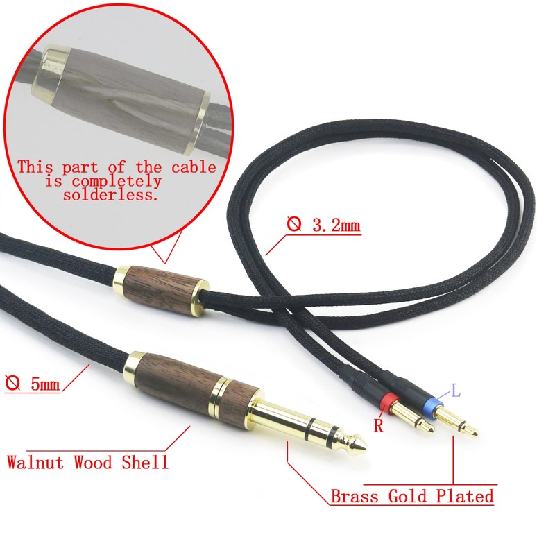 • 2, Connector: 3.5mm male and 6.3mm adapter to dual 3.5mm male, the connectors shell are made of the walnut wood / Solid Wood - Walnut + Brass Gold Plated