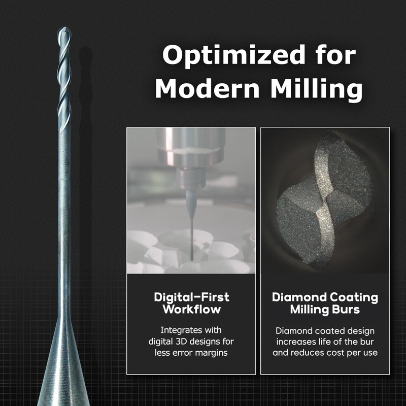 HANSONG Milling Bur 1mm Diamond Coated Compatible with ROLAND Milling CAD/CAM systems (DWX-4, DWX-50, DWX-51, DWX-52) for Zirconia