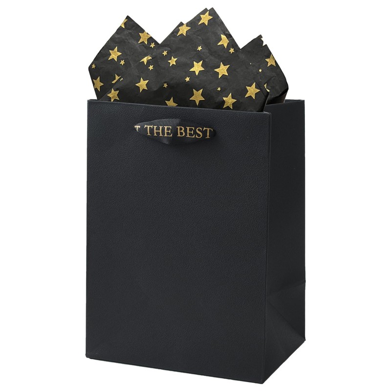 HANSWARE 4 Pack 7.7" Small Black Gift Bags with Handles Paper Gift Bag with Tissue Paper for Weddings,Graduations,Party,Shopping,Retirements,Valentine's Day,5.7" L x 3.9" W x 7.7" H