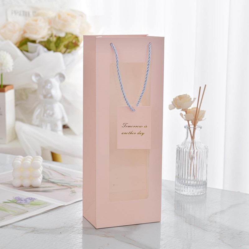 HANSWARE 6PCS Wine Gift Bag with Handles for Bottles Gifts Clear Window Paper Bags for Valentines,Wedding,Easter,Christmas,Baby Shower,Birthday Party
