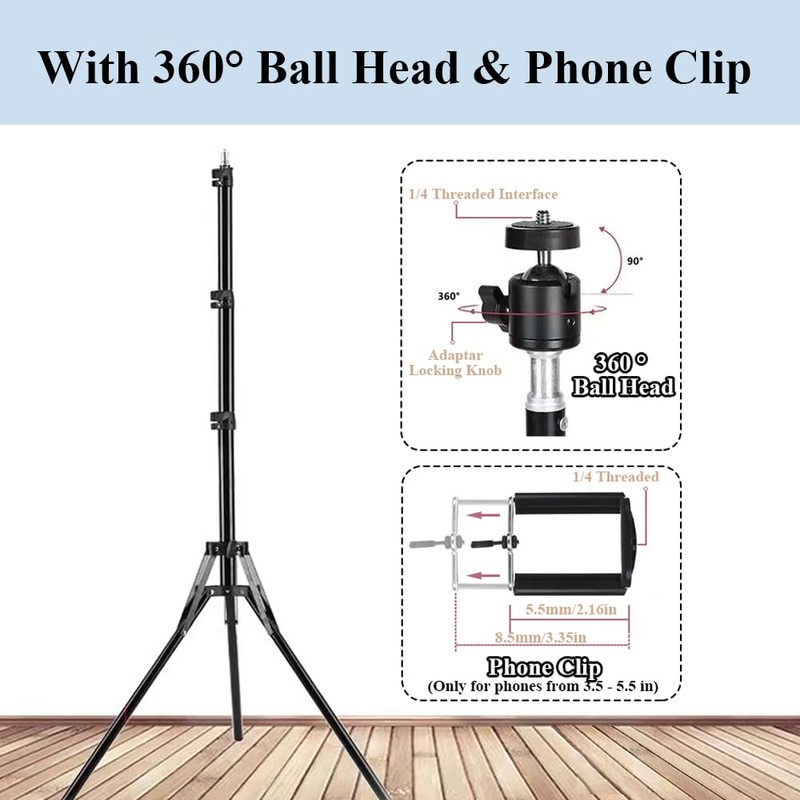- 【360° Rotatable Head】:The tripod stand uses a standard 1/4-inch mounting screw.Equiping with a 360°rotatable ball head, help you get the ideal angle.the ball head is also 1/4 screw, fit majority of digital devices, such as DLP projector, Digital camera,DSLR's, GoPros, webcams, ring light,etc.