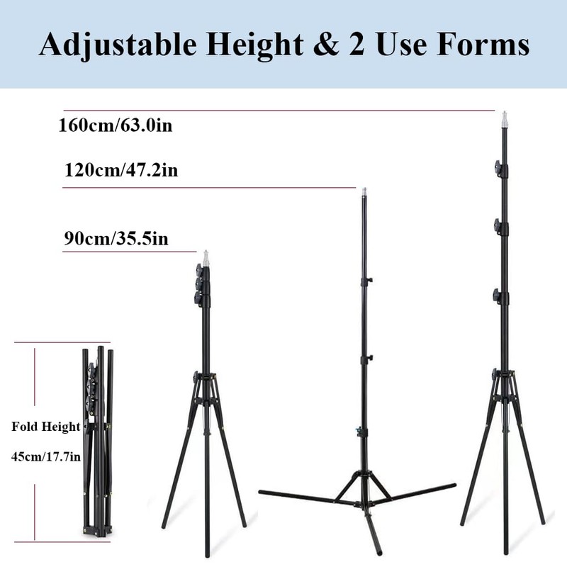 【Extendable Height】 The height of the tripod is adjustable from 26-60 inches (65-152cm). Three sturdy legs are inclined outwards to maximize stability and can be adjusted to the height you need.