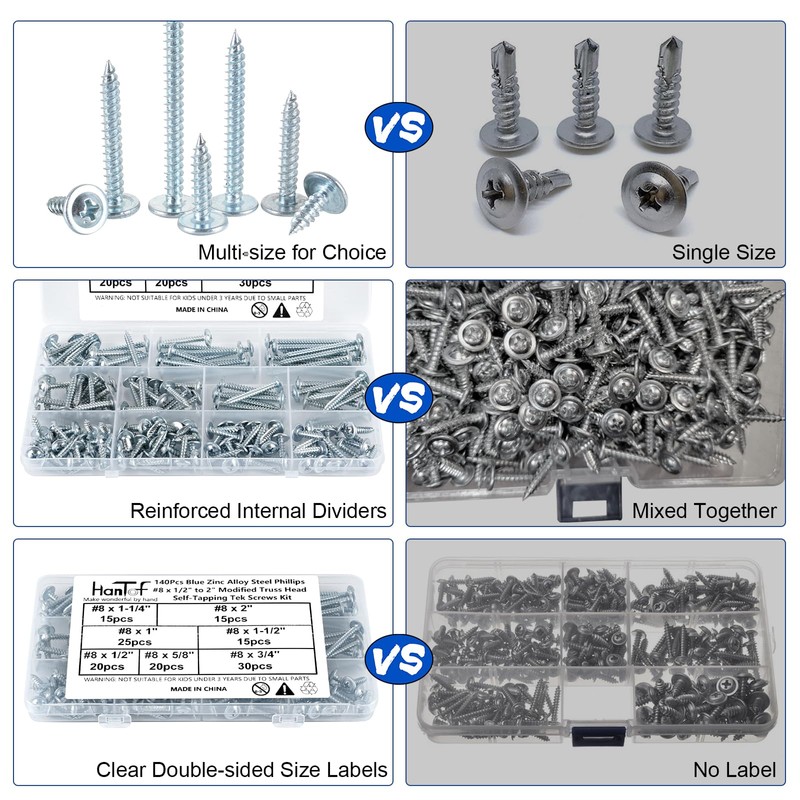 | Color: | Blue-140pcs 8# Wafer Head Self-tapping Screws |