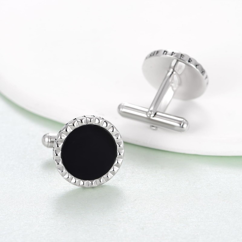 Hantuorui Men's Cufflinks: Black Onyx & 925 Sterling Silver, Featuring Viking Rune Design - Ideal for Father's Day, Grooms, Business & Wedding Tuxedo Accessories, Normal Size, Sterling Silver, onyx
