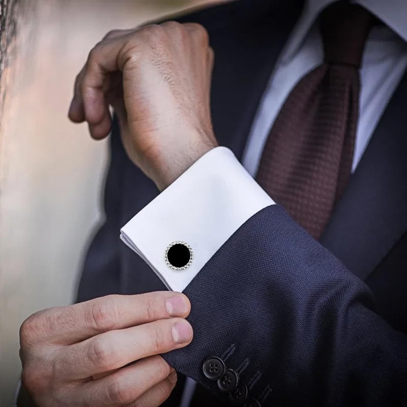 - Black Cufflinks Design:Black onyx cufflinks for men, adding a touch of elegance to any tuxedo or formal attire. Perfect as tuxedo shirt studs.