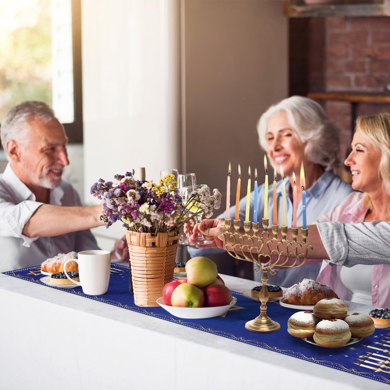 - PERFECT MATCH: this table runner measures 13 x 72 inches and fits round, square or rectangular dining tables with seating for 4-6 people. It is printed with eye-catching details and realistic colours to create a warm atmosphere for unforgettable Hanukkah and lasting memories.