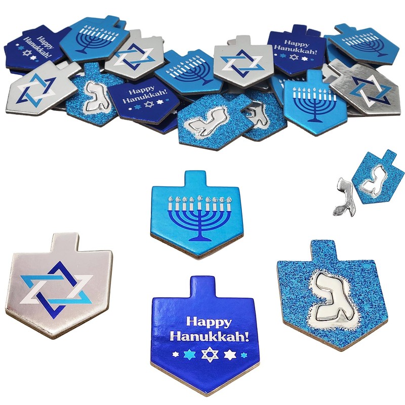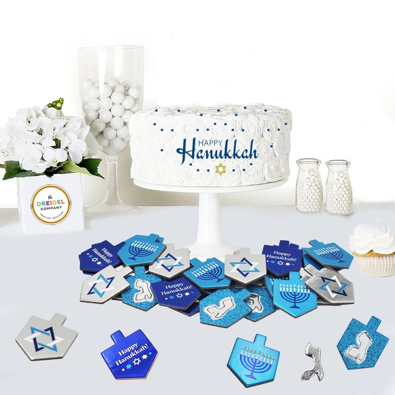 - Each pack comes with Hanukkah Blue and Silver Confetti: Glitter Dreidels and Glitter Stars in Blue & Silver. The Cutouts come in a mix of Dreidels, Stars, and Menorahs which are 1.75in W X 2in H (4.4CM X 5CM).