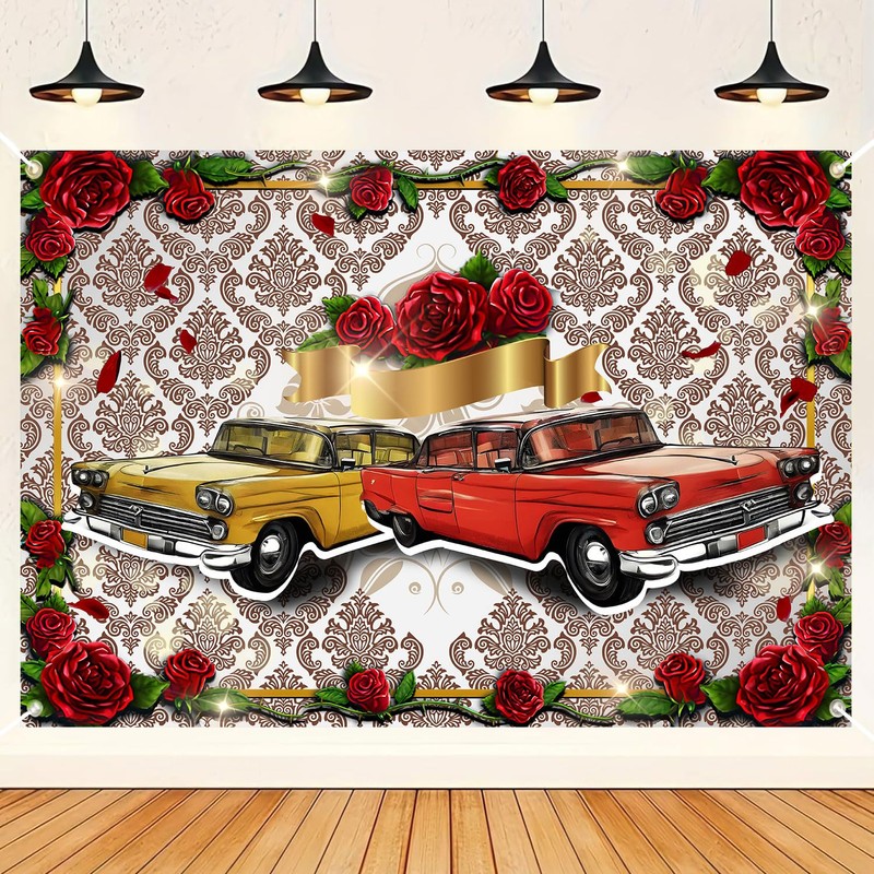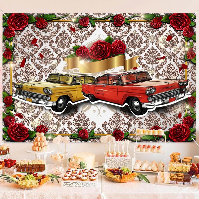 HANYING Retro Car Roses Backdrop 50s Classic Car Theme Party Photography Background for Bridal Shower Birthday Decoration Baby Shower Banner Portrait Studio Props 7x5ft DX01WH