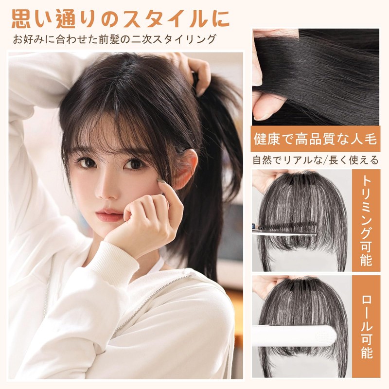 - 100% human hair for everyday use: Natural: 100% human hair, and when you wear it, it will fit perfectly to your hair. The texture is almost the same as your natural hair, so you won't be able to use a bangs wig. Refreshing: Thin and lightweight for everyday use. It can be used in a variety of situations, such as if you want to cut your bangs, to hide your hairline, or to worry about whether it looks good with bangs. "Easy" - No complicated instructions to use. Even first-time users can install it in 5 seconds