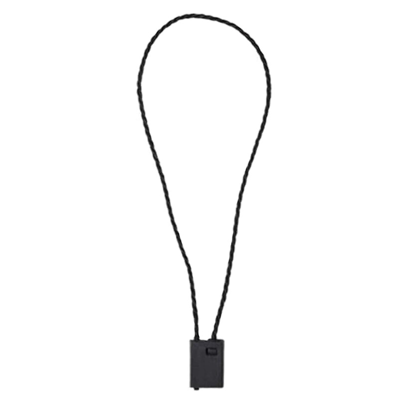 - Easy to install, the black nylon tag cord has a button lock mechanism, just press it down, no tag gun or other tools required.