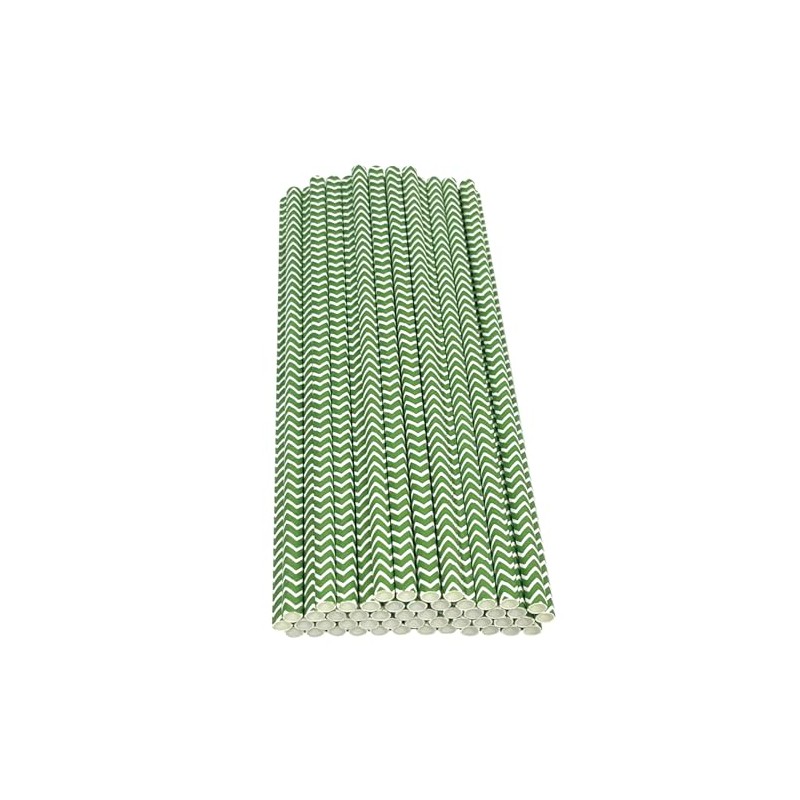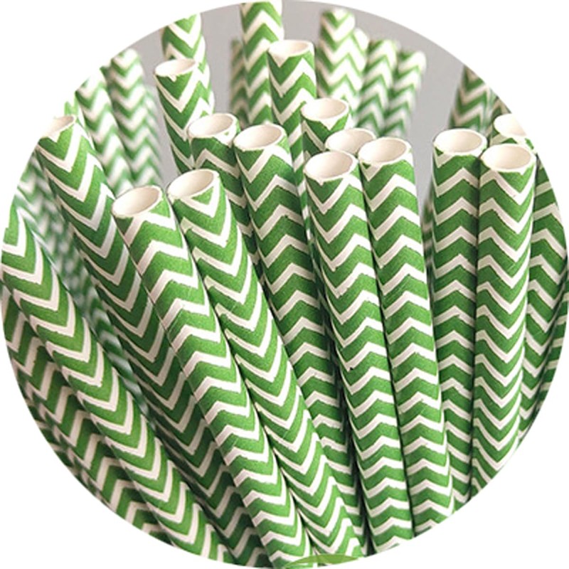 Haobase Pack of 50 Paper Straws, Biodegradable Paper Straws for Drinking Cocktail, Coffee, Cold Drinks (Ripples Pattern) (Dark Green Ripples)