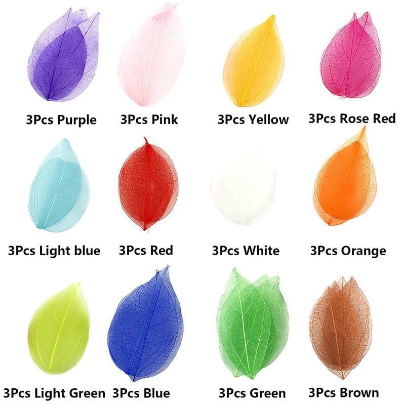 HAOBIN Natural Dry Leaves Dried Leaves Artificial Silk Leaves Decorative Leaves Craft Dry Leaves for Crafts DIY Resin Scrapbook Craft Card Making, 12 Colours, 36 Pieces