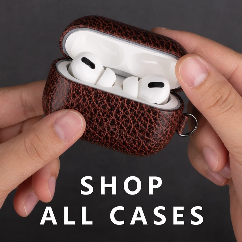 - 360° protection for your AirPods pro charging case. The outer case is fully covered with leather. Under the outer material there is a hard polycarbonate hard shell, which is lightweight and durable. And inside, a soft microfibre lining provides extra protection. Never worry about scratches, dirt, bumps and other daily damage