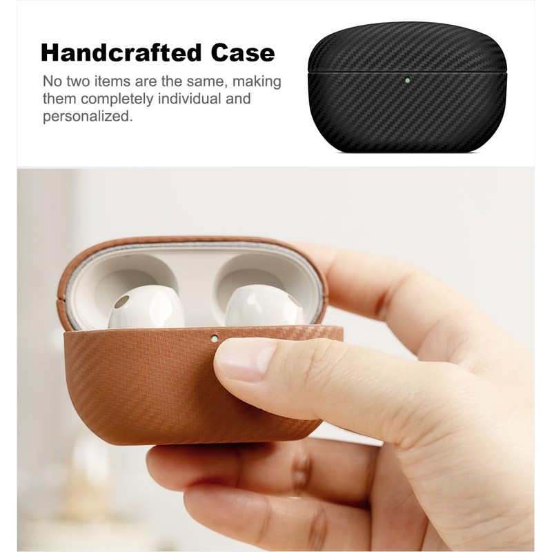 Haobobro Carbon Fibre Texture Leather Case for WF-1000XM5, Handmade WF 1000XM5 Leather Case, Shockproof WF-1000XM5 Leather Case, WF-1000XM5 Protective Leather Case - Black
