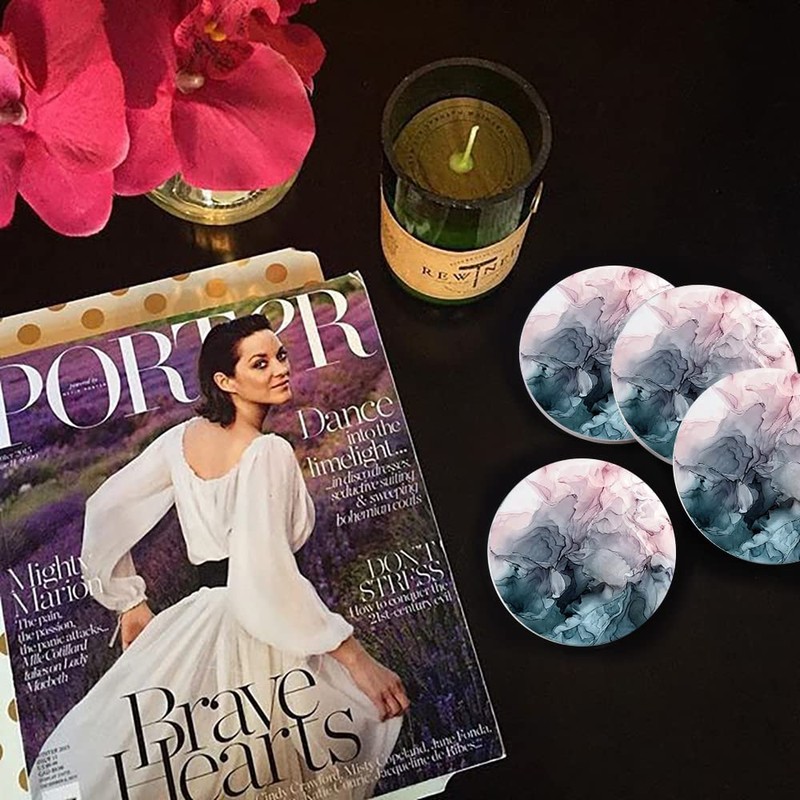 - (Heat Insulation & Absorbent) The coasters are made of high quality ceramic. Good insulation to prevent damage to your desk from high temperature drinks and tableware. Absorbent, quickly absorbs condensation and residue when cold drinks melt, keeping your desk dry and clean, preventing moisture, and reducing bacteria