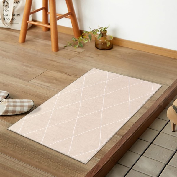 HAOCOO Entrance Mat, Indoor, Geometric Pattern, Scandinavia, 19.7 x 31.5 inches (50 x 80 cm), Small Rug, Stylish, Washable, Rectangle, Fluffy, Anti-Slip, Memory Foam, Soundproofing, Rug Mat, Outdoor,