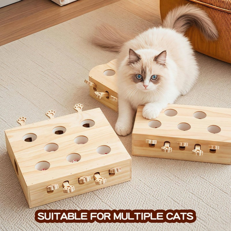 HaoCpetslian Wooden Whack-a-mole Interactive Cat Toy for Indoor Cats Interactive Pet Toy Box Cat Puzzle Toy for All Ages Cats for Indoor Play Exercise (5 Holes)
