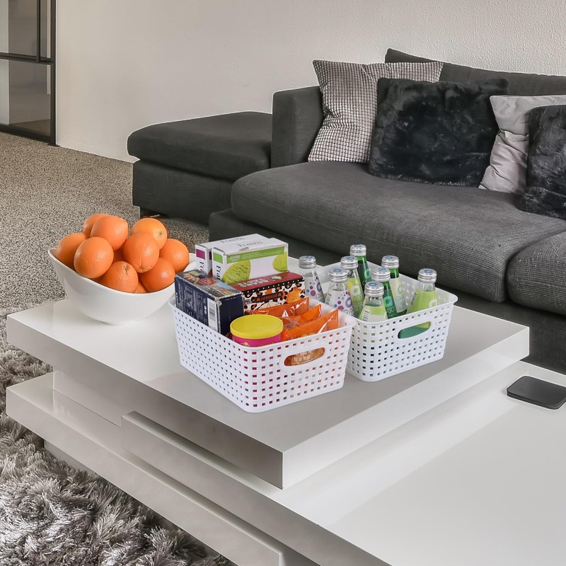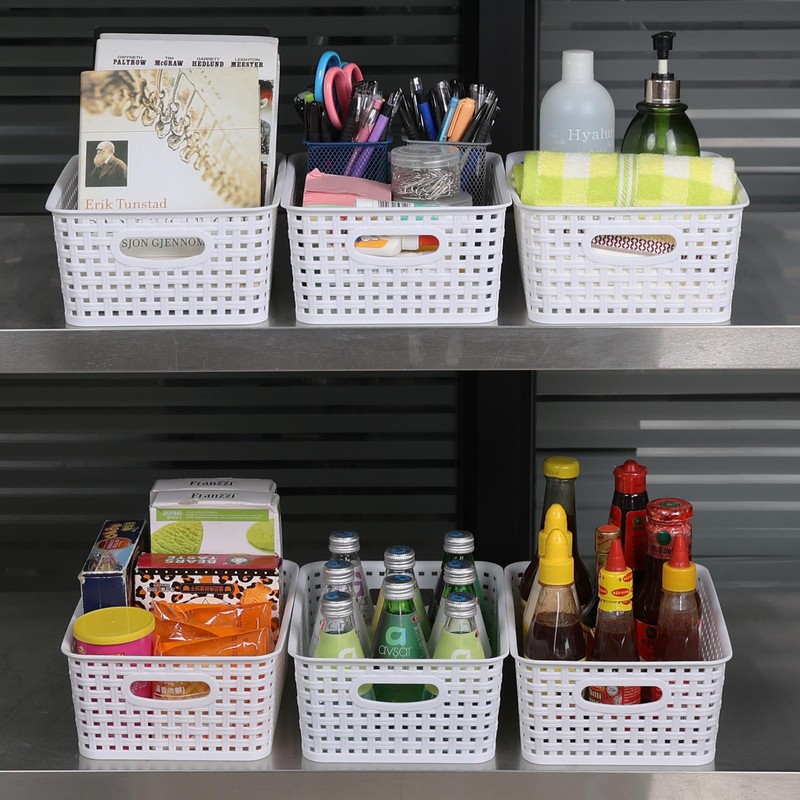 Haodehen 6-Pack White Plastic Weave Storage Basket, Plastic Storage Baskets for Kitchen, Small Organizing Baskets