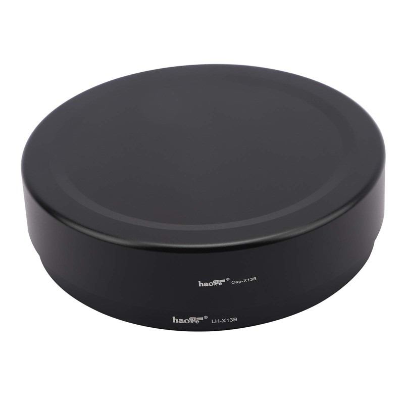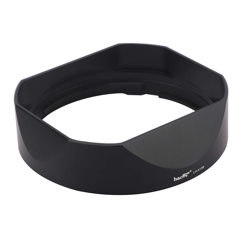 The square metal lens hood LH-X13B+Cap-X13 is designed for Fujifilm XF 18-55mm F2.8-4 R LM OIS lens and Fujinon XF 14mm F2.8 R lens. This bayonet lens hood protects the lens from stray light, prevents or limits lens reflections, improving your contrast and image quality. Provides extra protection for camera and lens from accidental scratches.