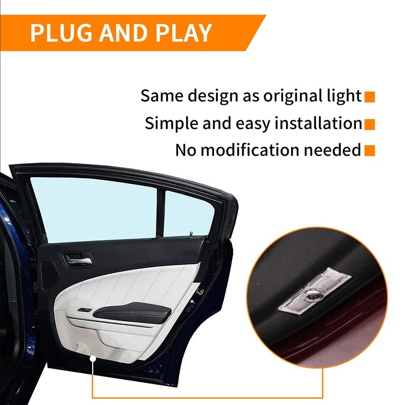 • 【EASY INSTALLATION】Plug and play! No drilling,no wiring no modification, just replace the old light directly, it can be easily completed in 5 minutes. The Door Light Signs Make Your Car More Attractive
