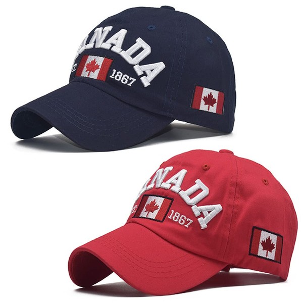 HAOJIANIAN 2 Pack Canada Baseball Cap,Canada Day Embroidered Maple Leaf Flag Adjustable Golf Hat for Men Women Kids (Navy+Red)