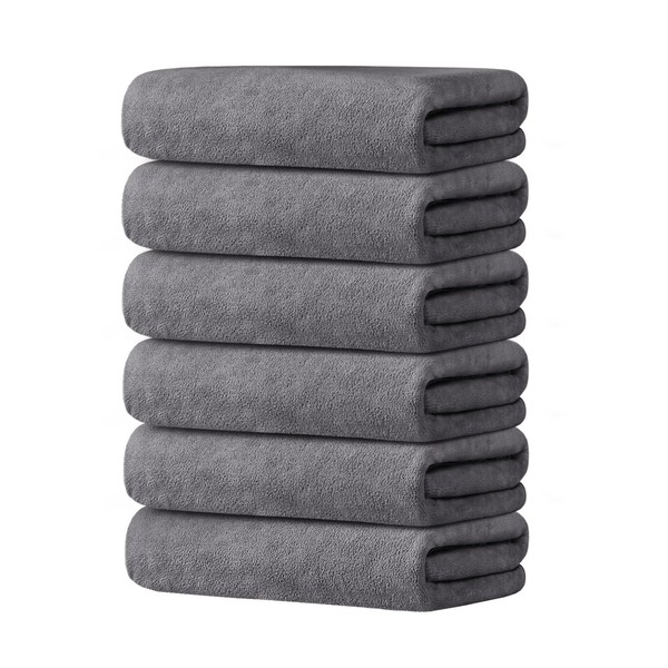 HAOK 6 Pack Microfiber Bath Towels Set Extra Absorbent, Quick Drying, Multi-Purpose Thick Towels for Shower, Yoga, SPA, Sport, Oversize Beach Towels, Grey(30" x 60")