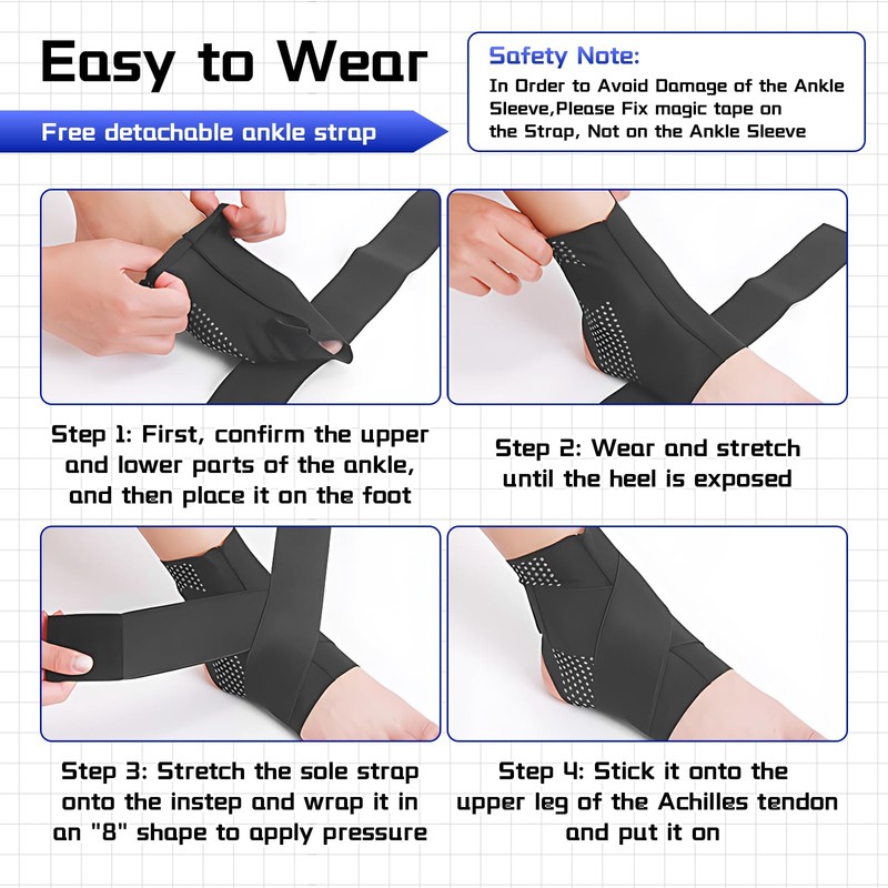 - Relieve ankle pain: foot bandage ankle stabilises joints and provides compression support. It protects the ankle and prevents the risk of ankle injuries. At the same time, it helps improve blood circulation and relieve ankle pain caused by sprains, bruises or sports injuries.
