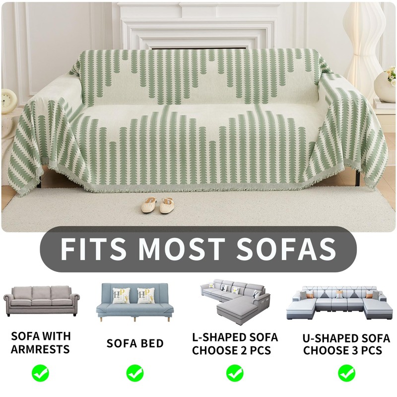 • SIZE CHOICE: Please measure your furniture size before choosing couch covers for sofa, size 71 "x 102" is suitable for single or small loveseat, size 71 "x 118" is suitable for loveseat or small 3 seat sofa, couch blanket cover size 71 "x 134" is suitable for 3 seat or small 4 seat sofa, size 91 "x 134" is suitable for couch covers for oversized sofa, couch covers L Shape allows you to choose 2 pieces of sofa cover,please refer to the measurement in the picture 5 for details Guide.