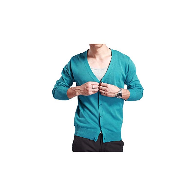 HaoMay Mens Slim Lightweight Cashmere V Neck Button Down Knit Cardigans Sweater (Medium, Azure)