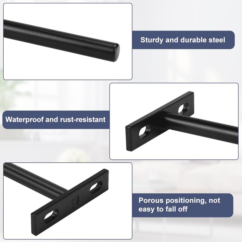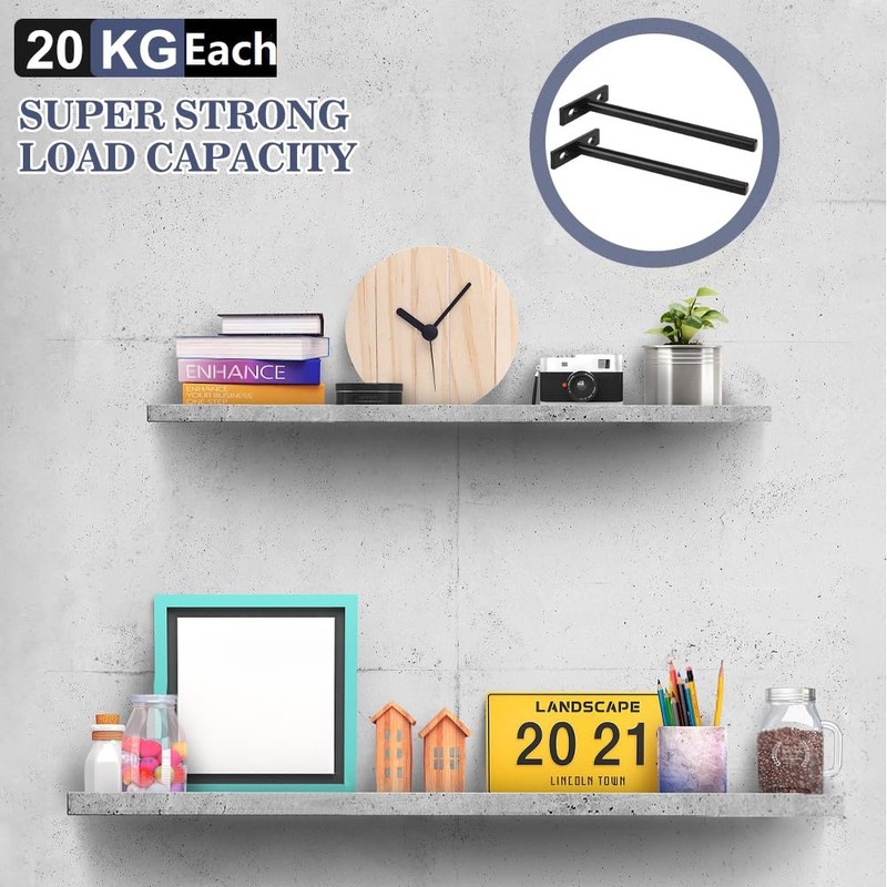 • High-quality and durable material: our floating shelf bracket is made of high-quality steel and specially treated to give it excellent durability and hardness. The surface is smooth and also treated with black baking paint, which is not only beautiful, but also waterproof and rustproof. Whether it is used in a humid environment or for a long time, it can remain strong and robust, and is not easy to deform and break