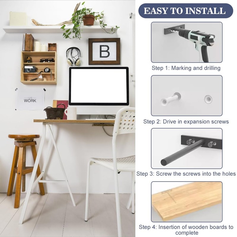 Our shelf bracket is made of high quality and durable material, which is not only easy to assemble, but also super invisible to keep your walls looking good. Easy installation saves you time and effort.