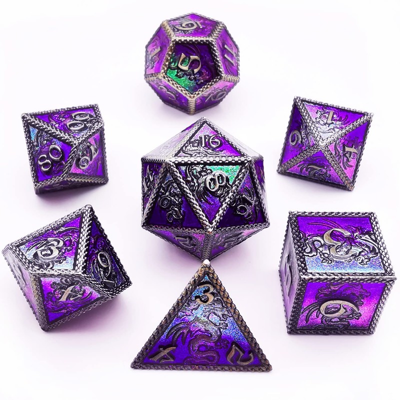 HAOMEJA Dungeons and Dragons Dice DND Dice Set D and D Dice Metal 6 Sided Polyhedral Dice for Pathfinder MTG Board Games Roll Playing Dice D&D Dice Set D20 D12 D10 D8 D6 D4 (Silver Blue Purple)