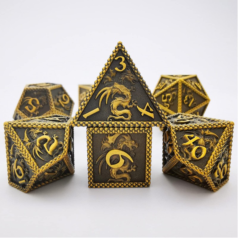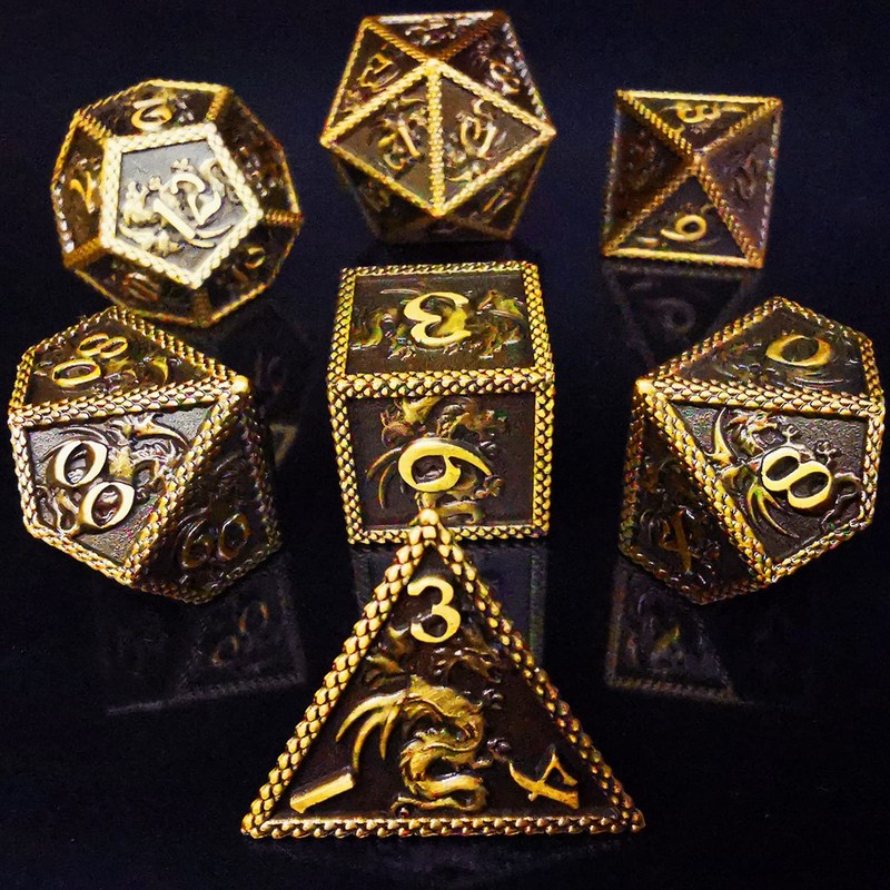 HAOMEJA Metal DND Dice Set 7pcs D&D Dice for Dungeons and Dragons Pathfinder RPG Gameplay Dice (Ancient Brass)