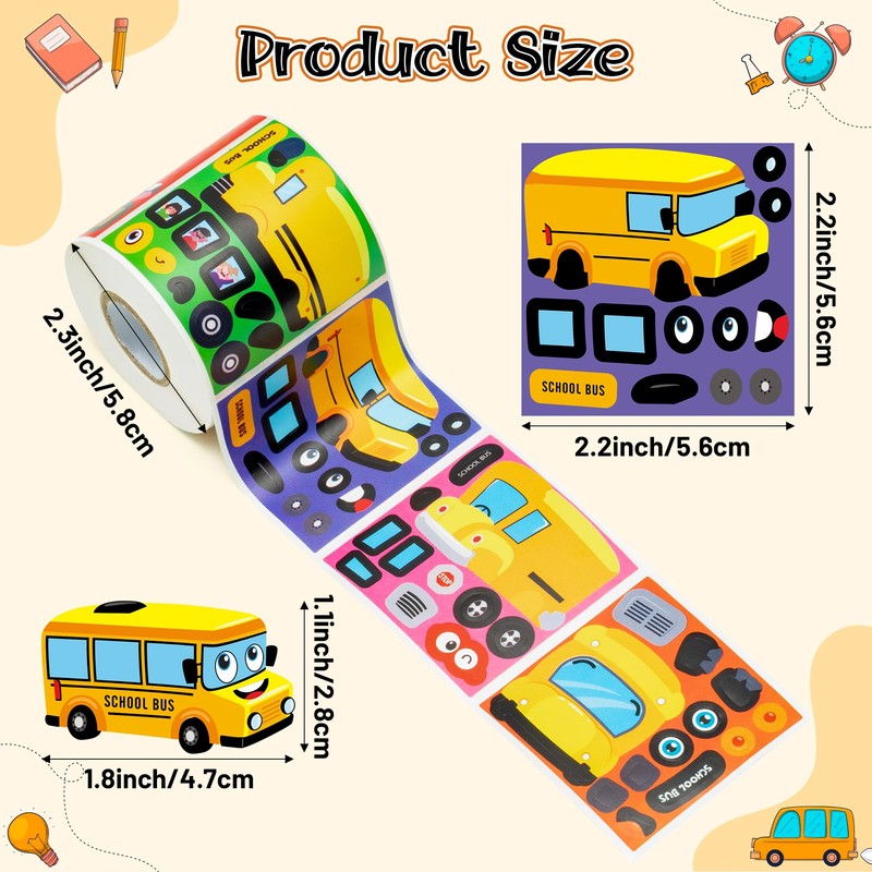 Haooryx 300pcs Make Your Own School Bus Scene Sticker Roll Back to School Make A Cartoon School Bus DIY Sticker First Day of School Mix and Match Cute School Bus Sticker School Reward for Kids