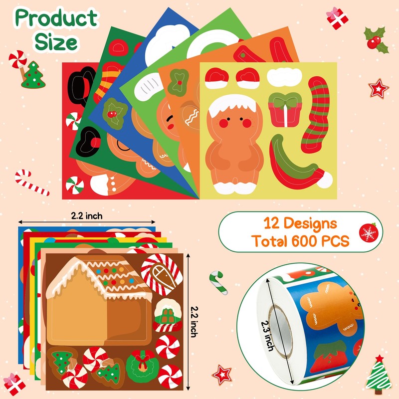 - What You Will Get: Package includes one roll of gingerbread house stickers, and one roll of gingerbread man stickers, containing 600pcs stickers in 12 styles (50pcs for each style). Enough quantity can easily meet your daily use and replacement.