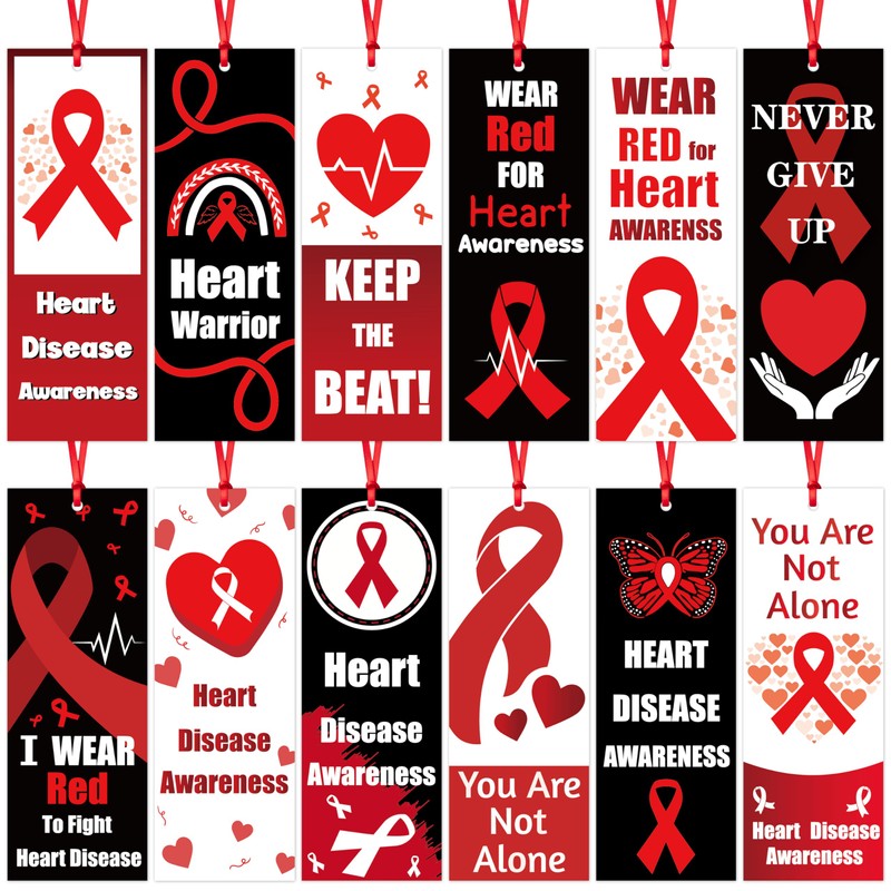- Package Includes: You will receive 120pcs Heart Disease Awareness bookmarks in 12 different designs, 10pcs for each design and come with 130pcs of red ribbon, which are clipped and sufficient to meet your needs.