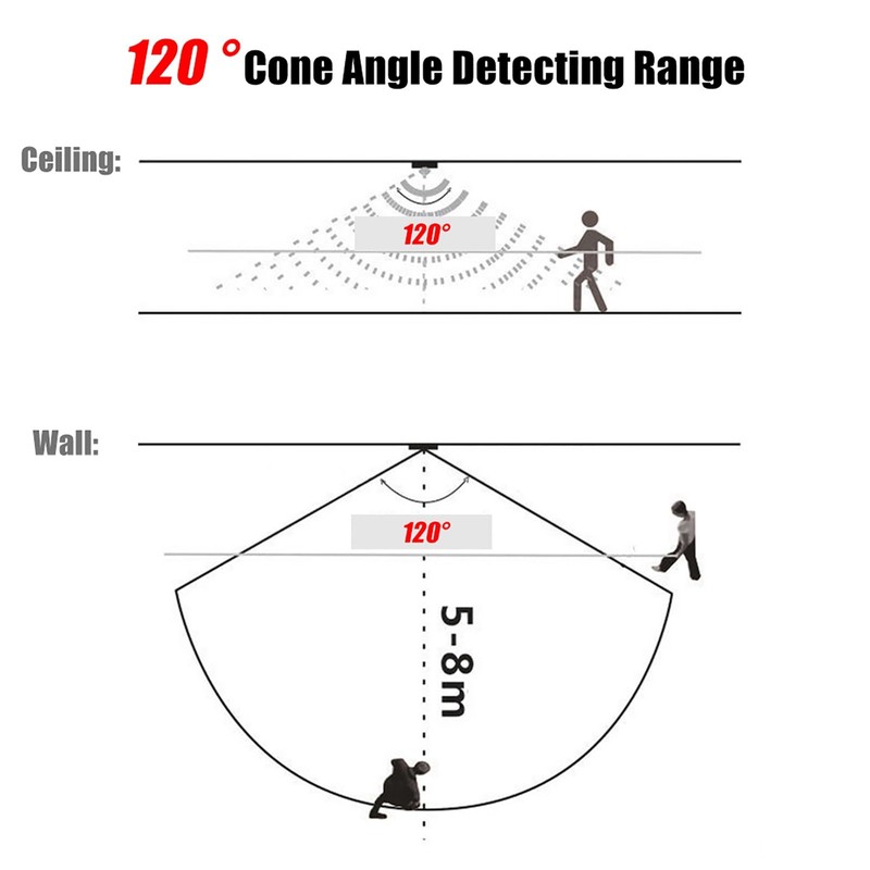 - Wide Angle Detection: The motion sensor has a 120 degree cone angle detection range, sensitively capturing activity signals and automatically controlling the lighting to effectively reduce energy consumption