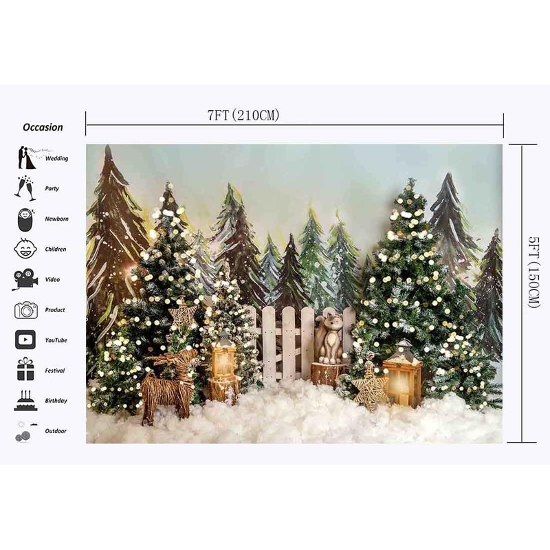 Haosphoto Christmas Backdrop for Photography 7X5FT Heavy Snow Backdrops Winter Wonderland Pine Tree Forest Reindeer Xmas Background for Newborn Kids Happy New Year Photo Studio Props Vinyl HS898