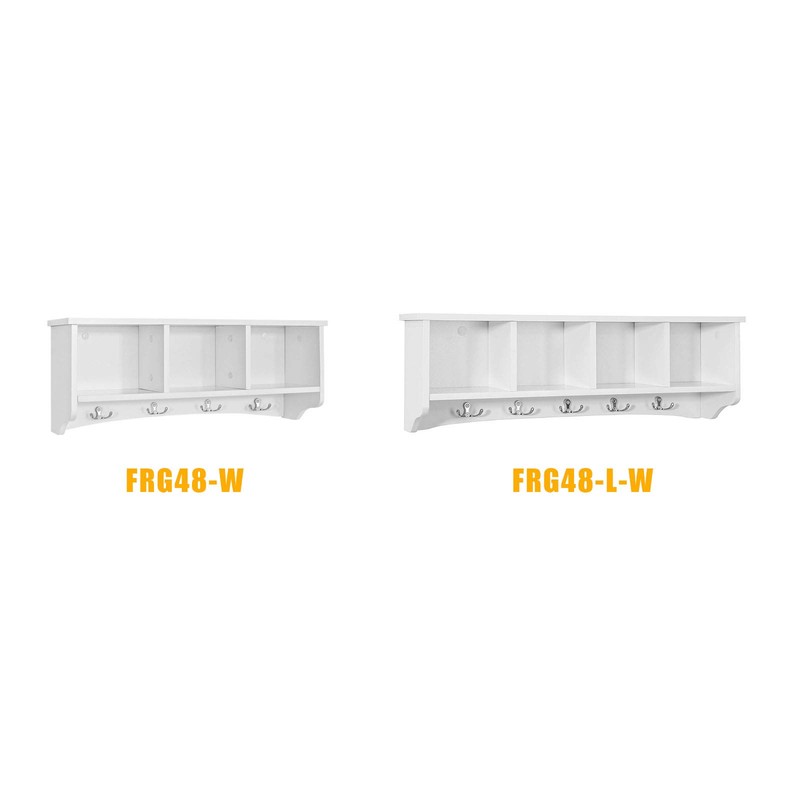 Haotian FRG48-L-W, White Wall Display Storage Unit with 4 Components 5 Hooks, Wall Coat Rack Bathroom Kitchen Cupboard