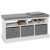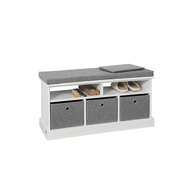 Haotian FSR67-HG, 3 Baskets Hallway Storage Bench, Shoe Bench Shoe Rack Shoe Cabinet with Seat Cushion
