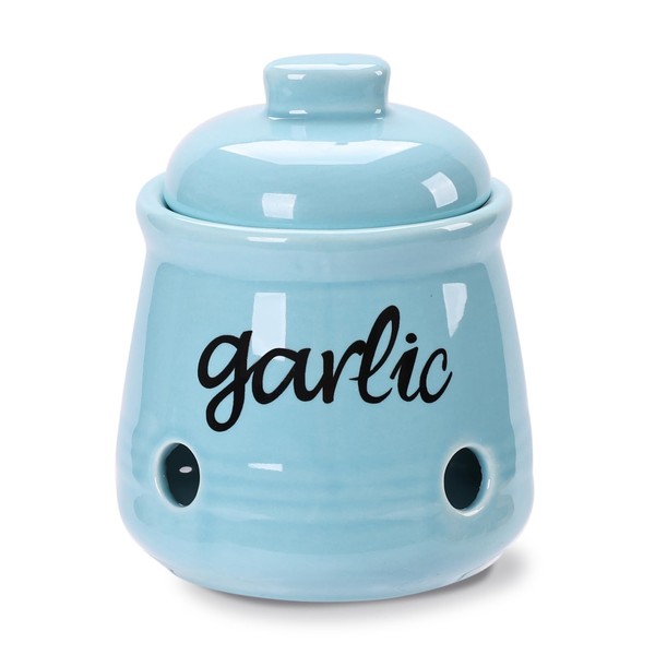 HAOTOP Garlic Keeper with Lid, Ceramic Mini Garlic Saver Container for Countertop, Farmhouse Kitchen Decor (Turquoise)