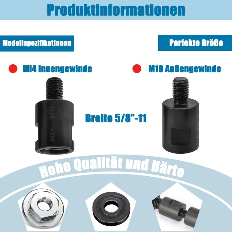 - Thread adapter conversion tool: specially designed for the M10 thread grinder (e.g. core bit) to your M14 threaded device with this thread adapter.