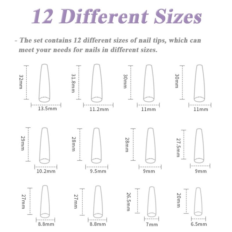 - 12 Different Sizes: Press on nails for women come in 12 different sizes.Suitable for most women's nail sizes, no matter how big your size is, you can choose the one that suits you, and you can also trim fake nails to any length or shape you want.