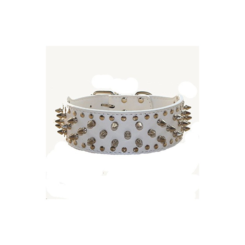 Haoyueer Faux Leather Studded Dog Collar for Medium Large Dogs Pit Bull Mastiff Bully Boxer (L, White)