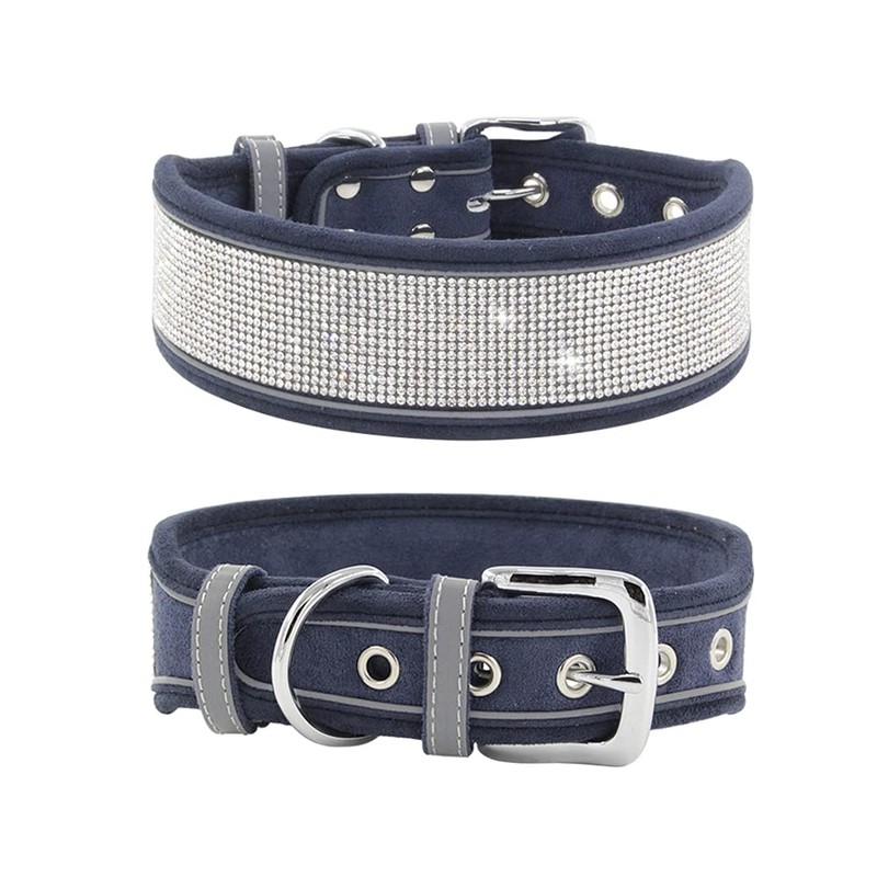 haoyueer Rhinestone Dog Collar, Dazzling Sparkling Soft Suede Reflective Large Dog Collar Crystal Diamond Collar for Medium & Large Dogs (S:12-15", Navy)