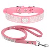 haoyueerCute Dazzling Sparkling Elegant Fancy Soft Suede Leather Bling Rhinestone Crystal Jeweled Pet Cat Dog Puppy Collar Dog Leash Combo Set (L, Pink-5)