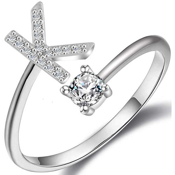 Haoze Initial Letter Ring for Women Silver Stackable Alphabet Rings with Initial Adjustable Crystal Inlaid Initial Rings Bridesmaid Gift(K)