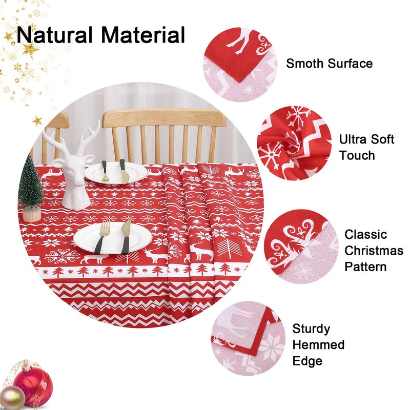 - Premium Quality Tablecloth: Our Christmas tablecloth is made of high-quality polyester fabric which feels skin-friendly, soft and breathable, offering you a comfortable and healthy environment.