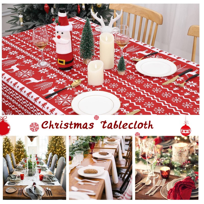 - Versatile Occasions: The Christmas tablecloths are perfect for Christmas use, parties, ceremony, cafes, catering, Christmas, picnic, event, barbecues, buffets, indoor and outdoor use and more. Carries six different sizes and perfect for tables from 4 seats to 12 seats.