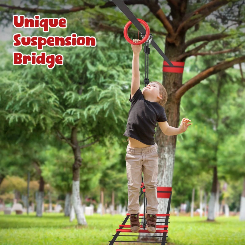 • 【Challenging Suspension Bridge】Start your Hapfan ninja rope course with a thrilling suspension bridge. Navigating this obstacle requires focus, strength, and balance, making it a true challenge for kids, teens, and young adults